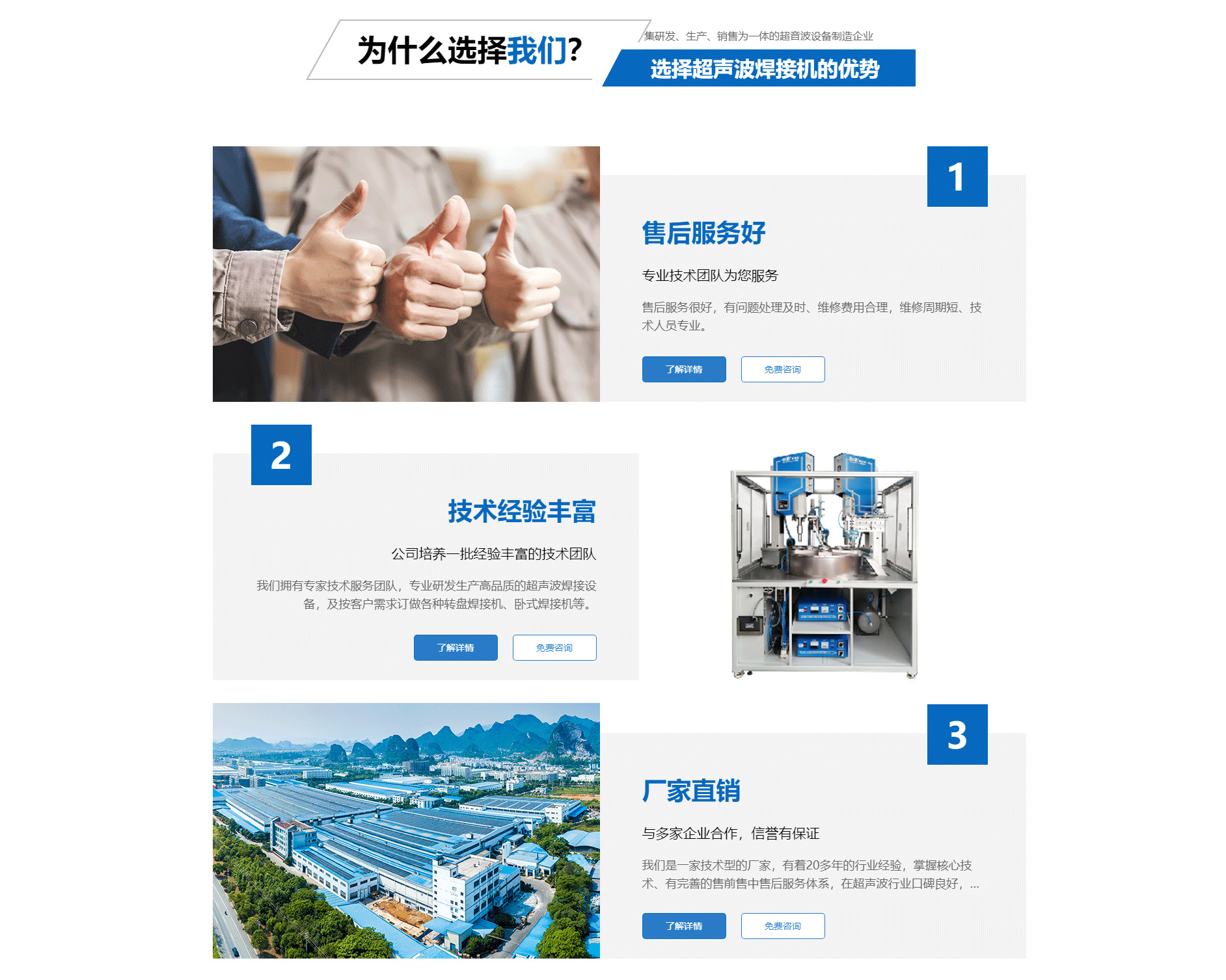關(guān)于我們廈門勁榮機(jī)械設(shè)備有限公司是一家集研發(fā)、生產(chǎn)、銷售為一體的超音波設(shè)備制造企業(yè),主要產(chǎn)品包括多規(guī)格型號的超音波塑膠熔接機(jī)、熱板式塑料焊接機(jī)、多工位轉(zhuǎn)盤焊接機(jī)、振動摩擦焊接機(jī)、旋轉(zhuǎn)式塑膠熔接機(jī)及配套的工裝夾具等。公司自2003年成立以來,一直致力于產(chǎn)品不斷完善中,并追求產(chǎn)品的精益求精,于2004年向國家商標(biāo)局注冊了“勁榮”牌商標(biāo),2009年榮獲廈門市商標(biāo)。 經(jīng)過多年的努力,公司已經(jīng)發(fā)展成為占地面積2000余平方米、擁有員工50余人的企業(yè)。公司一直將“品質(zhì)是企業(yè)發(fā)展的原動力”作為經(jīng)營理念,嚴(yán)把質(zhì)量關(guān),建立了一整套有效的安全生產(chǎn)及管理模式,不僅贏得了同行的認(rèn)可,更取得了客戶的信賴,先后與九牧集團(tuán)、路達(dá)工業(yè)、建霖集團(tuán)、西伯電子、蒙發(fā)利實業(yè)、松霖科技、銥科集團(tuán)、科司特電子等公司建立了長期的合作關(guān)系。 面對已經(jīng)取得的成績,我們不驕不滿,因為深知業(yè)績只能代表過去,只有靠良好的產(chǎn)品質(zhì)量和完善的售后服務(wù)才能在客戶中口碑相傳,在...